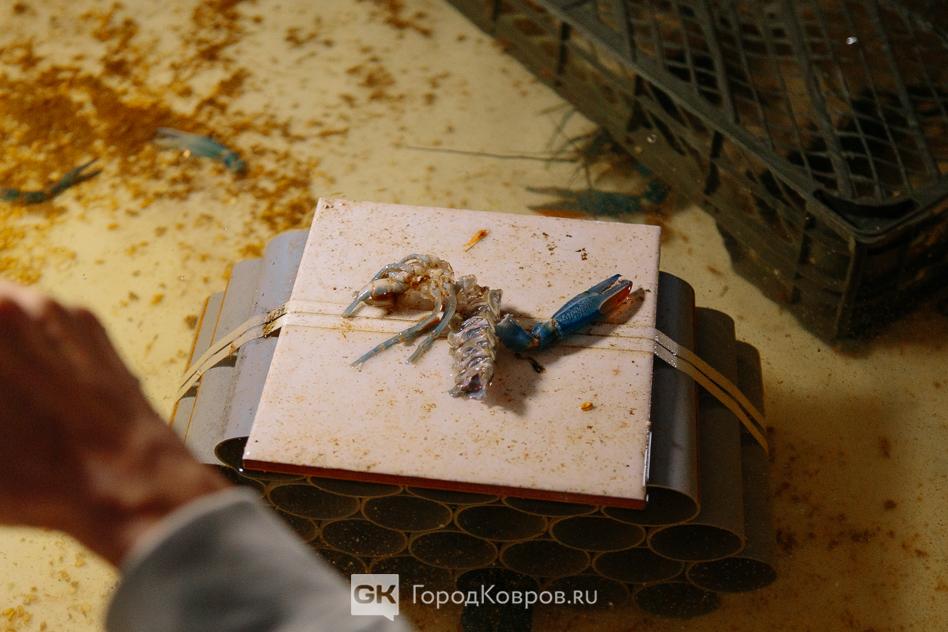 На ферме «девочки» и «мальчики» содержатся отдельно. В «общежитиях» нередко происходят конфликты и борьба. Мы выловили для осмотра рака без клешней…