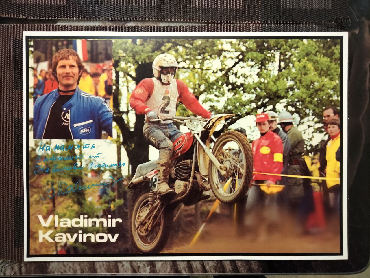 - «Я загорелся идеей выкупить этот мотоцикл, задал вопрос. Он поначалу отказывался, но потом, после нескольких встреч и переговоров всё же была названа сумма. К мотоциклу в придачу дал кое-какие личные вещи Владимира Ивановича Кавинова. В том числе и плакат с его фотографией, который мотокроссмен лично подписал именно Виталию Викторовичу. Короче, выложил запрашиваемую сумму и забрал мотоцикл. Я и не думал, не помышлял, что мне вдруг когда-то этот мотоцикл достанется! Такое раз в жизни бывает, да и то не у каждого!»