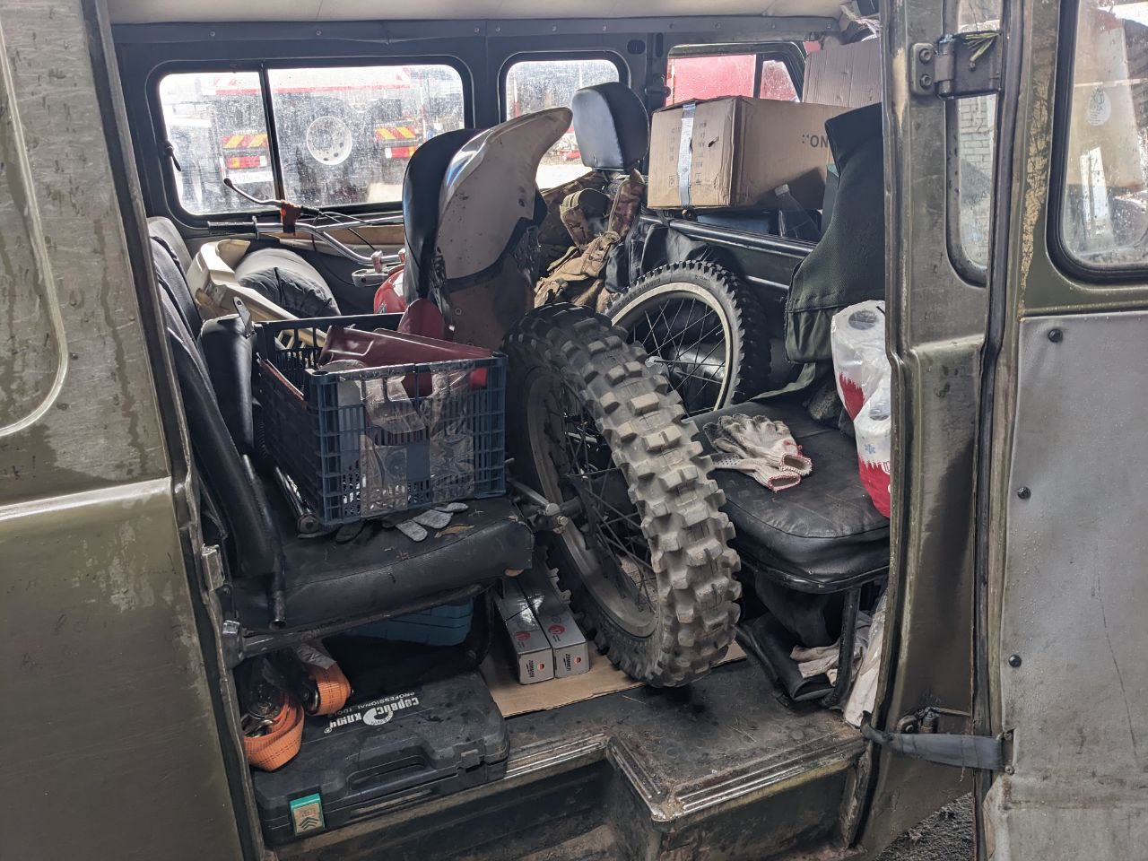 - «Один осколок от обстрела пробил бензобак — сверху вошёл, внизу вышел. Досталось ещё переднему колесу. на нижних трубах видны следы, пробило камеру, пришлось её клеить. Кстати, один из осколков так и остался внутри колеса».