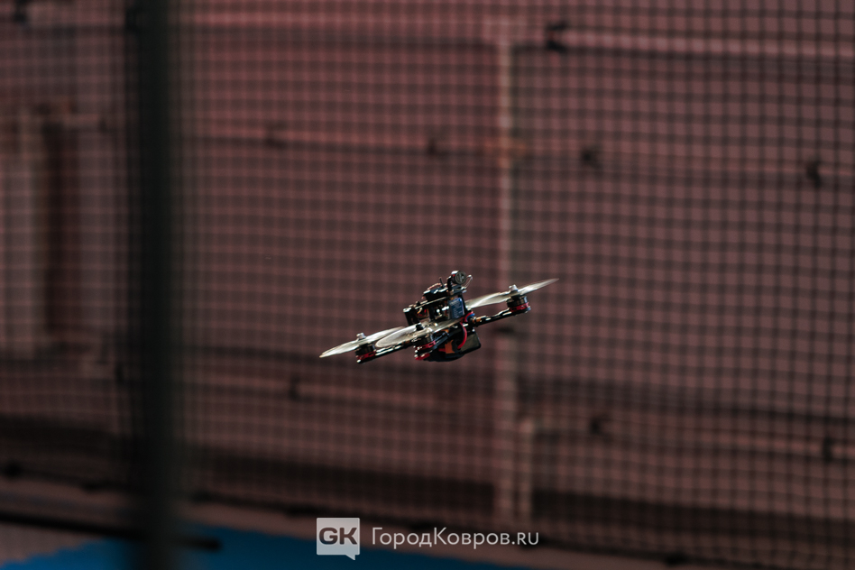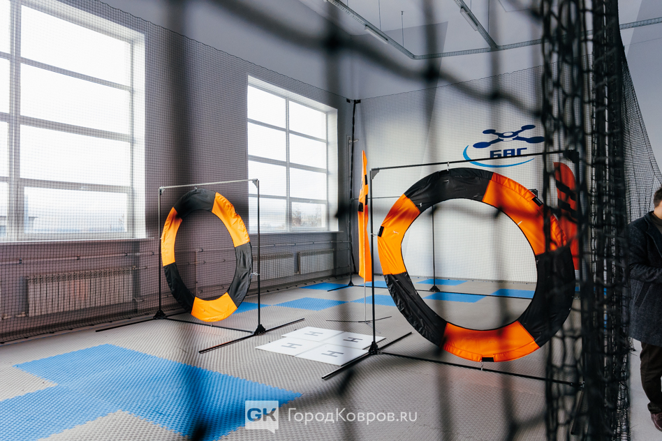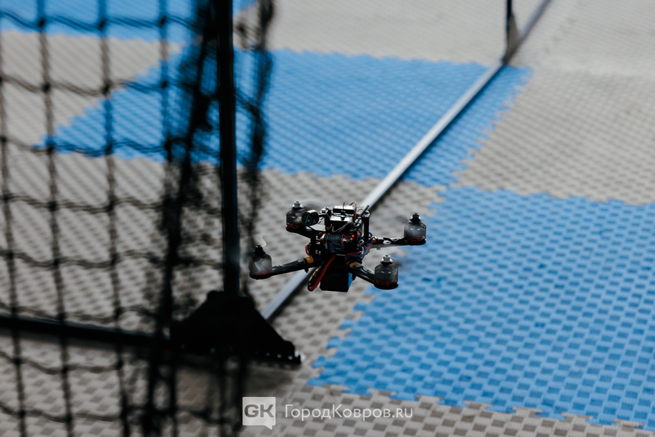 Николай и его ученики показали учебный класс, а затем мы прошли на закрытый полигон. Здесь проходят соревнования испытателей дронов. Управление идёт при помощи FPV, а полёт дронов на площадке чем-то напоминает кадры с чемпионата по квидичу.