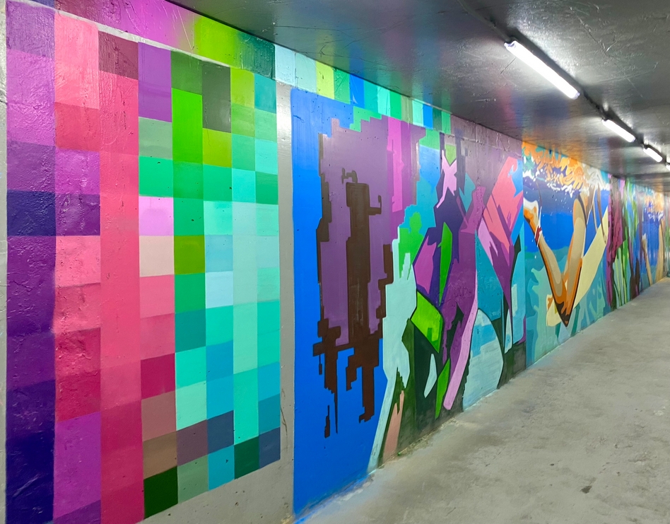 — Летом 2025 года я расписывал подводный переход в вейк-парке «Добрый» в Доброграде, — рассказывает Илья. — Это две стены по 40 метров каждая. Работал по собственному эскизу в стиле, который я сейчас развиваю и могу назвать «digital nature». Основная идея — сочетание природных мотивов и цифровых элементов, создающее ощущение иллюзорности нашего пространства в век тотальной цифровизации. Это была отличная возможность реализовать свою идею на большом объекте. Отдельная благодарность Дмитрию Поликанову за доверие к моему видению.