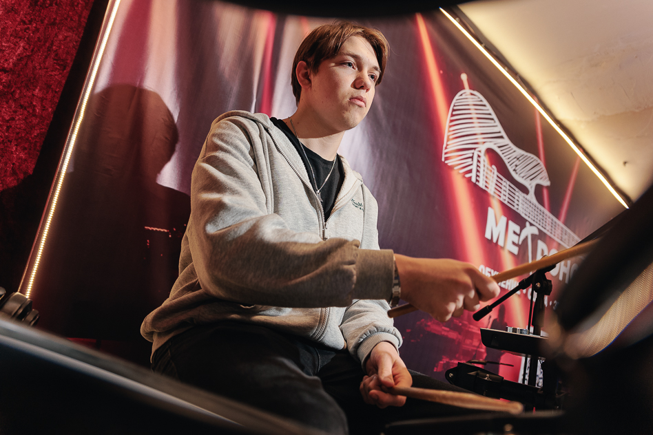 Сегодня здесь звучат гитары, гремит барабанная установка, в студии записывают треки. Сюда приходят и те, кто впервые взял в руки медиатор, и те, кто, как Денис Бродский, уже выпускает собственные альбомы.