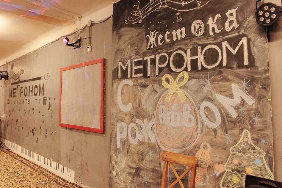 «Метроном» сознательно избегает пути модного антикафе или бара. Здесь нет меню, но есть чайник для своих. Нет гламурного ремонта, но на стенах — гитары, а на полу — ковры, оставшиеся в наследство от легендарного «Поворота». Платный вход на концерты, но все сборы идут на аренду. Это пространство, где музыка первична.