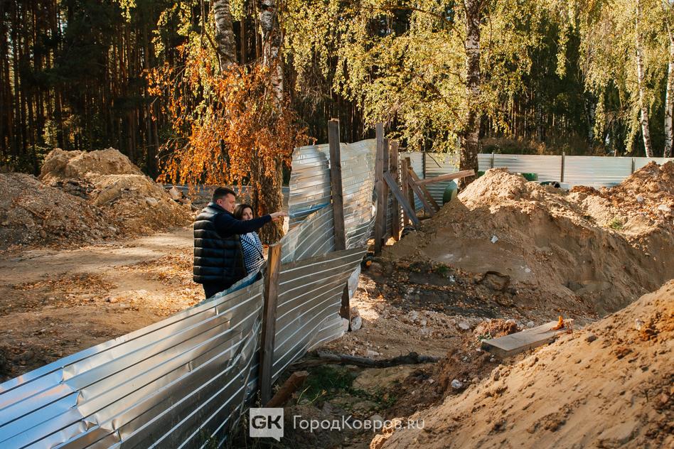 И вот она, многострадальная улица Маршала Устинова. Мы осмотрели её со стороны лесополосы на Еловой. Сергей Сидорин посетовал, что ковровчане в очередной раз стащили несколько секций забора из профлиста.
