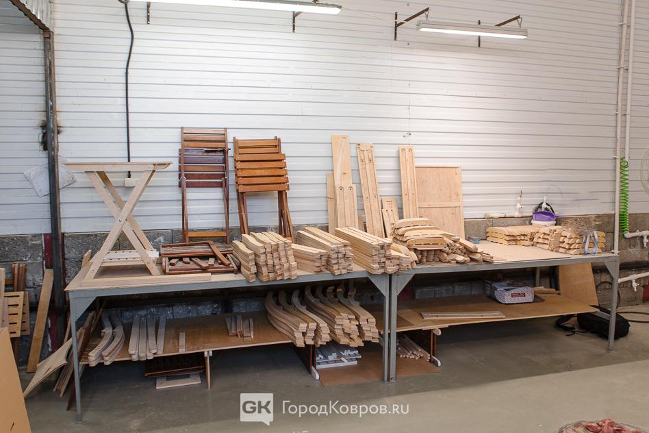 На момент нашего визита на производство практически вся изготовленная мебель была упакована и подготовлена к отправке на выставку.