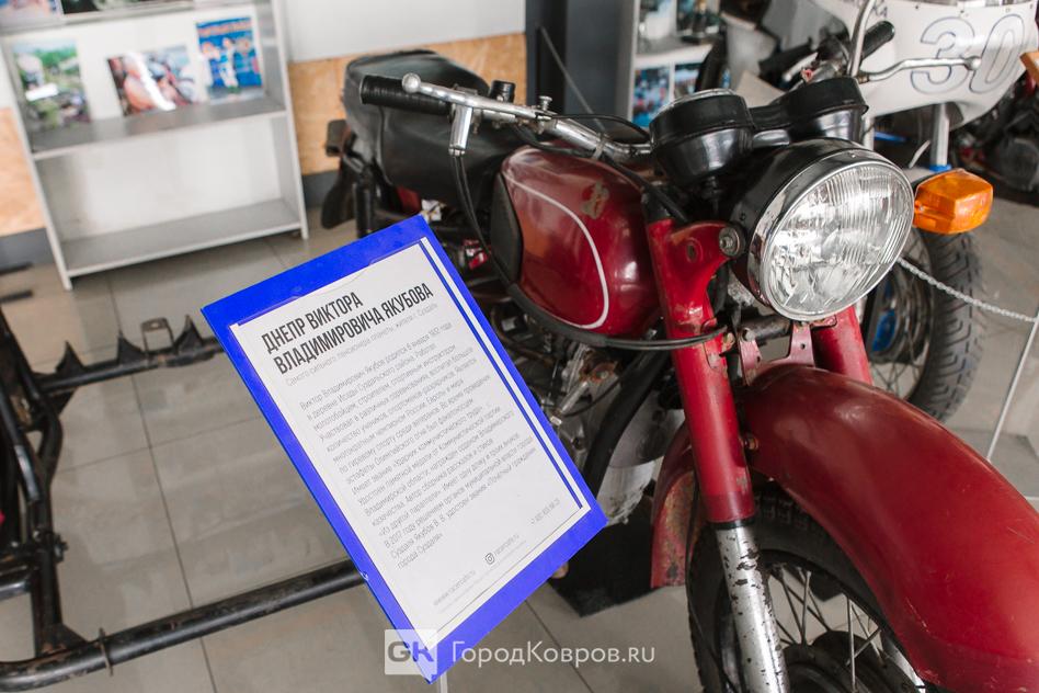Даже очень крутая коллекция мототехники потеряет половину привлекательности, если не будет достойного помещения. У нас несколько мотоциклов размещено в СК «Ледовая арены». Это мототехника, предоставленная коллекционерами Львом Пестовым и Николаем Тубаевым. Предполагалось, что в дальнейшем экспозиция перерастёт в музей. Владелец мототехники, предприниматель Лев Пестов (это его личные мотоциклы были размещены в СК) готов был предоставить на обозрение ковровчан и гостей города большее количество моделей. Но из-за проблем с финансированием реализовать задумку не удалось.