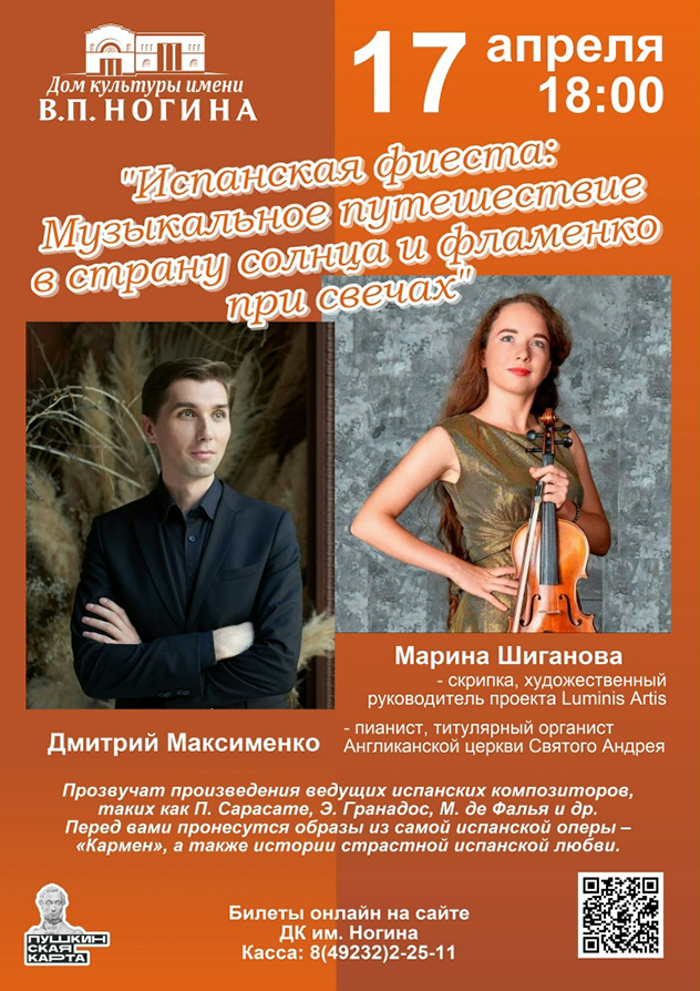 Прозвучат произведения ведущих испанских композиторов, таких как П. Сарасате, Э. Гранадос, М. де Фалья и др. Перед вами пронесутся образы из самой испанской оперы – «Кармен», а также истории страстной испанской любви. На концерте вы узнаете много интересного об испанской музыке и культуре.