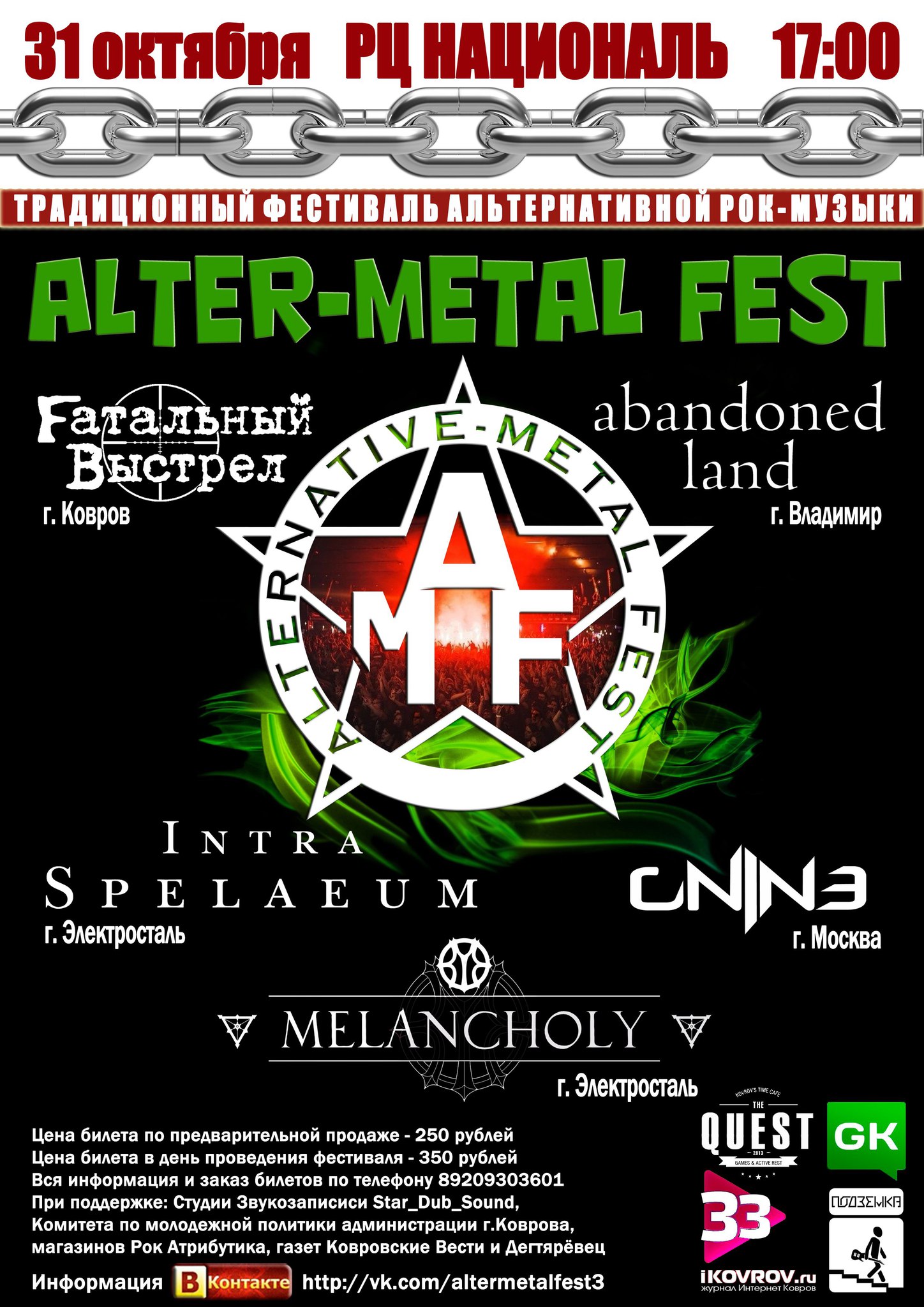 Для всех любителей живой качественной рок-музыки – 31 октября в ночном клубе “Националь” пройдет традиционный фестиваль “ALTER-METAL FEST”.