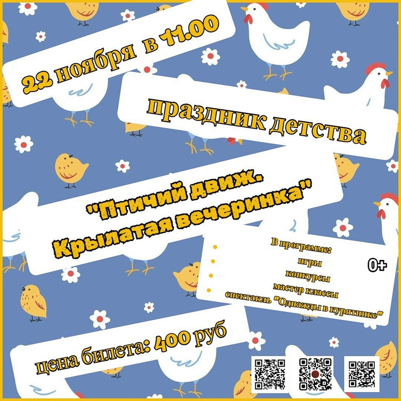 Игры, конкурсы, мастер-класс, по окончании праздника всех ждет спектакль «Однажды в курятнике».