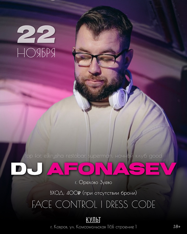 DJ AFONASEV (г. Орехово Зуево). Начало: 23:00
