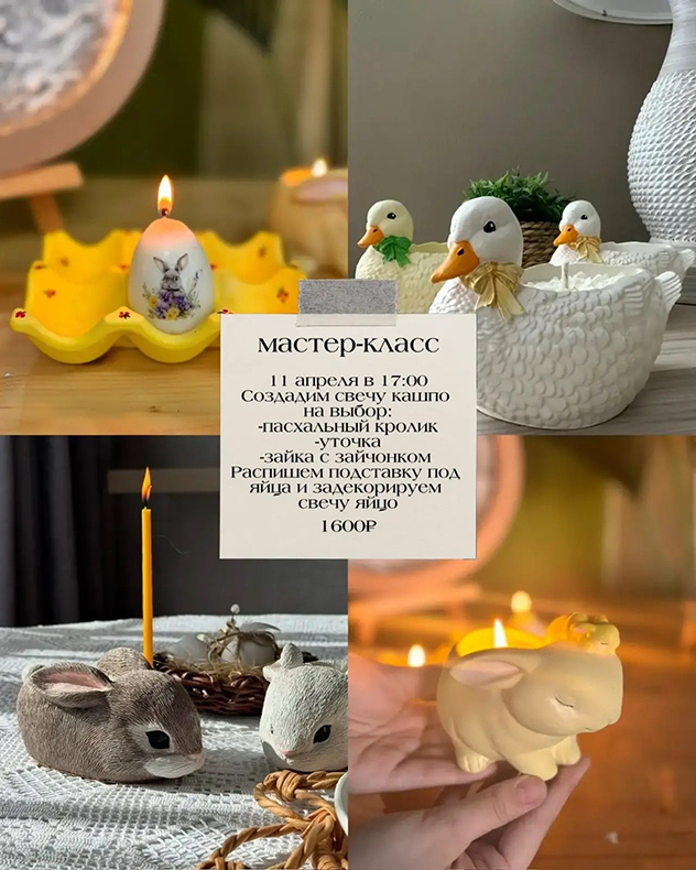 Пасхальный кролик, заяц или уточка на выбор. Что будем делать: распишем кашпо, зальём свечу с ароматом на ваш выбор, распишем подставку под яйца, задекорируем свечу-яйцо
