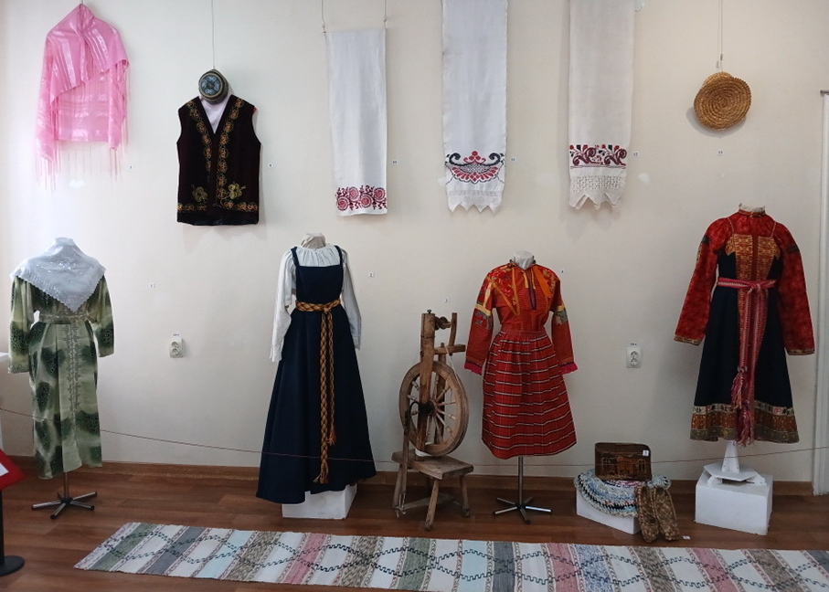 На выставке представлены традиционные костюмы различных национальностей, предметы быта. Многие из них имеют историческую ценность и являются частью фондовой коллекции Ковровского историко-мемориального музея.