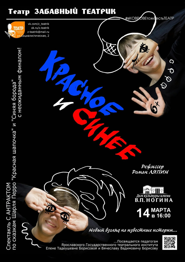 Приглашаем на уникальный спектакль театра «Забавный Театрик» — «Красное и Синее»! Это необычная постановка с антрактом, в которой переплелись две знаменитые сказки Шарля Перро — «Красная Шапочка» и «Синяя Борода».