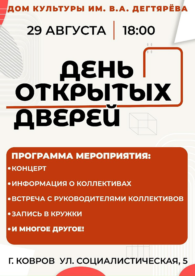 29 августа 18:00, ДК им. В.А. Дегтярева