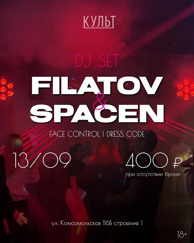 Культ приглашает тебя на вечеринку DJ SET от FILATOV and SPACEN!