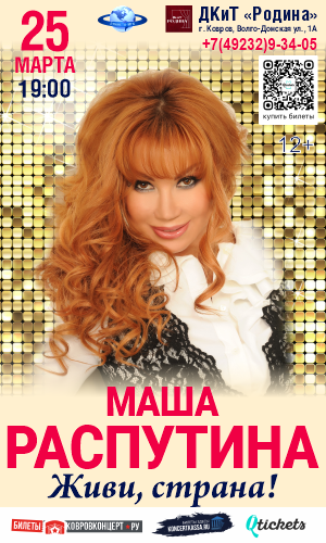 25 марта в 19 часов во Дворце культуры и техники «Родина» состоится концерт заслуженной артистки России Маши Распутиной. Обладательница уникального голоса и яркой сценической манеры представит программу, в которую войдут как любимые хиты, так и новые композиции.