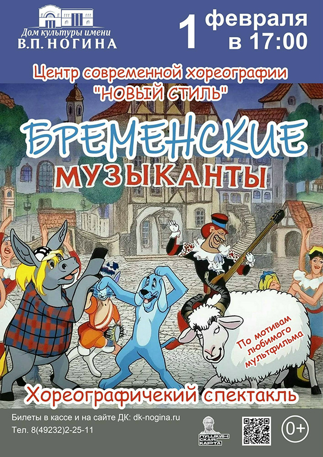 Хореографический спектакль «Бременские музыканты». 6+