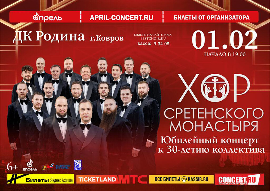 Юбилейный концерт Хора Сретенского монастыря, приуроченный к 30-летию коллектива. Соборный образ российской певческой культуры соединит времена и народы, прошлое и будущее великой страны.