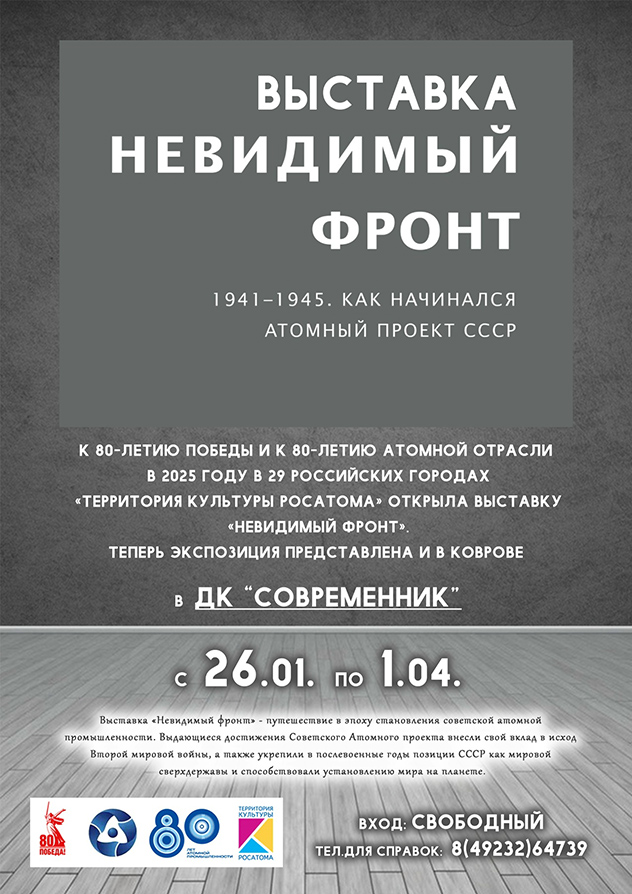 К 80-летию Победы и к 80-летию атомной отрасли в 2025 году в 29 российских городах «Территория культуры Росатома» открыла выставку «Невидимый фронт».