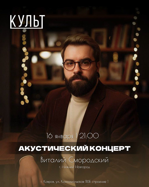 Получаем удовольствие от вечера под акустическое выступление музыканта из дивного Нижнего Новгорода Виталия Смородского.