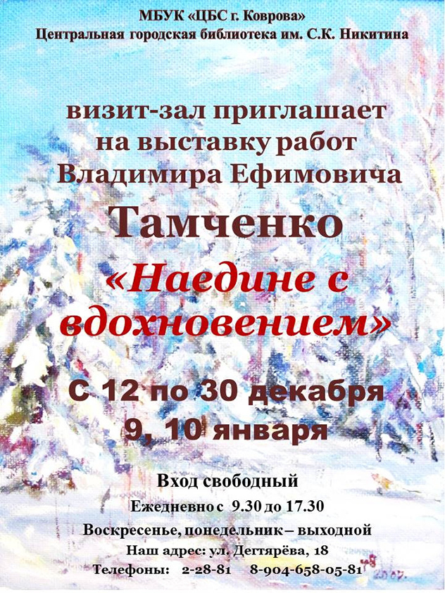 Выставка работ Владимира Ефимовича Тамченко «Наедине с вдохновением».