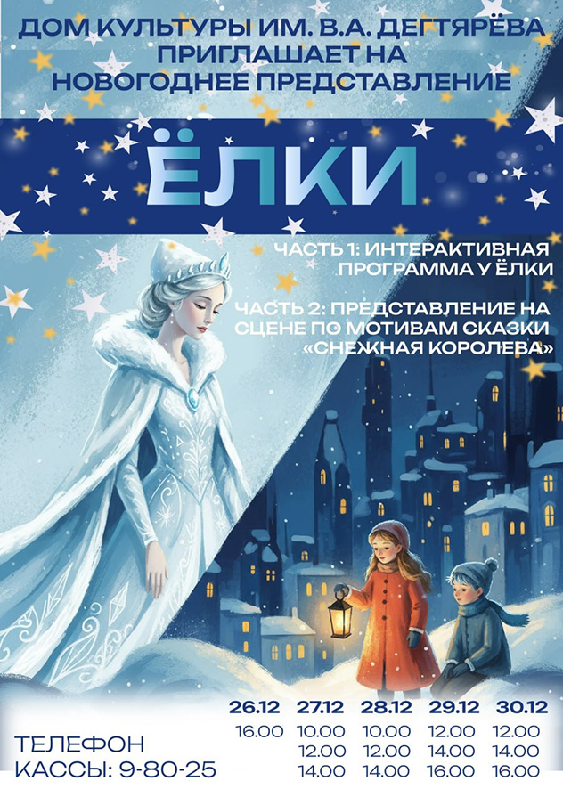 Дорогие друзья, приглашаем вас и ваших малышей на самые яркие новогодние ёлки 2025 года! Захватывающее представление по мотивам «Снежной королевы» и интерактивная игра с любимыми героями у ёлочки подарят незабываемые эмоции!