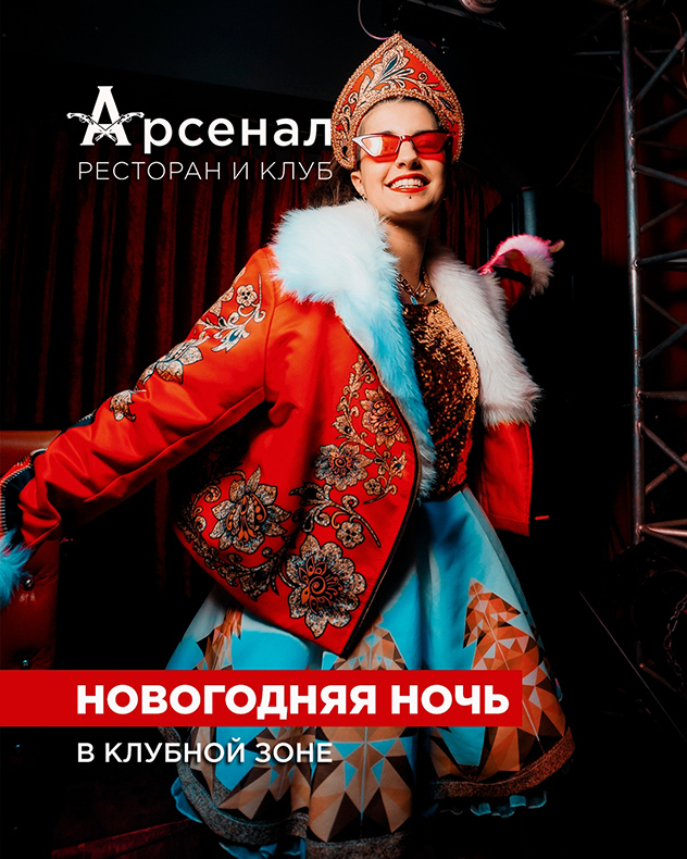 Новогодняя ночь в Арсенале! Встречаем вас после боя курантов, в ночь с 31 декабря на 1 января с 01:00 до 07:00. Празднуем начало нового года мощно, под вашу любимую музыку.