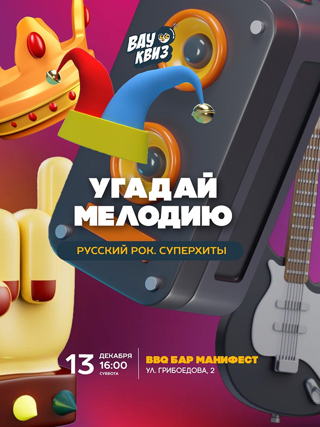 Угадай мелодию. Русский рок. Суперхиты. Читайте этот анонс под соло из «Арии» или под взрывной бит от «Зверей». Собираем всех, кто готов сломать стереотипы о «депрессивном» русском роке и подпеть настоящим гимнам нескольких поколений.