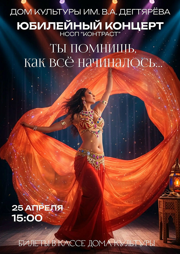 Приглашаем вас окунуться в атмосферу восточного волшебства на юбилейном концерте «Контраст»! Этот вечер станет настоящим путешествием в мир танца, музыки и ярких эмоций. Вас ждут незабываемые выступления, зажигательные ритмы и атмосфера праздника, которую мы создаём вместе вот уже много лет
