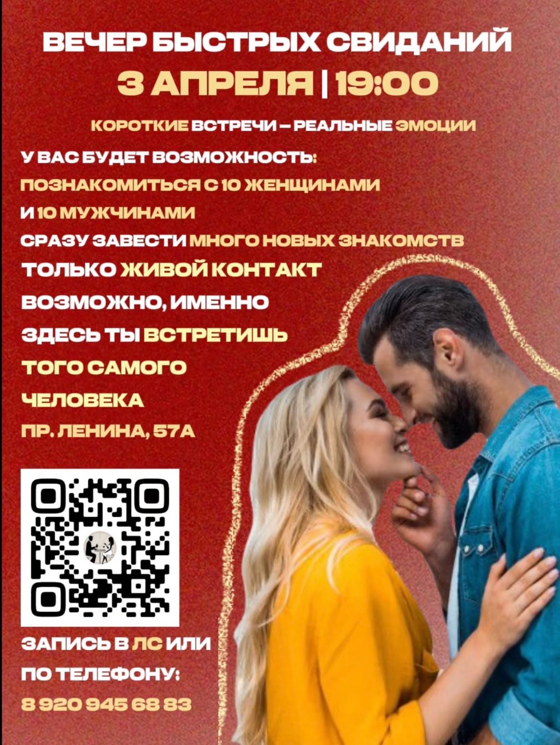 Вечер, где знакомства происходят легко, а эмоции — по-настоящему. Короткие встречи — реальные эмоции. Без переписок, без ожиданий — только живое общение и мгновенная искра между людьми.
