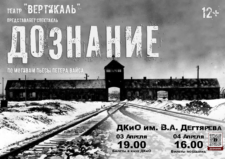 Приглашаем Вас на наш новый спектакль «Дознание» по мотивам пьесы Петера Вайса. Народный молодежный театр «Вертикаль» г.Ковров, режиссер — Евгений Соколов.