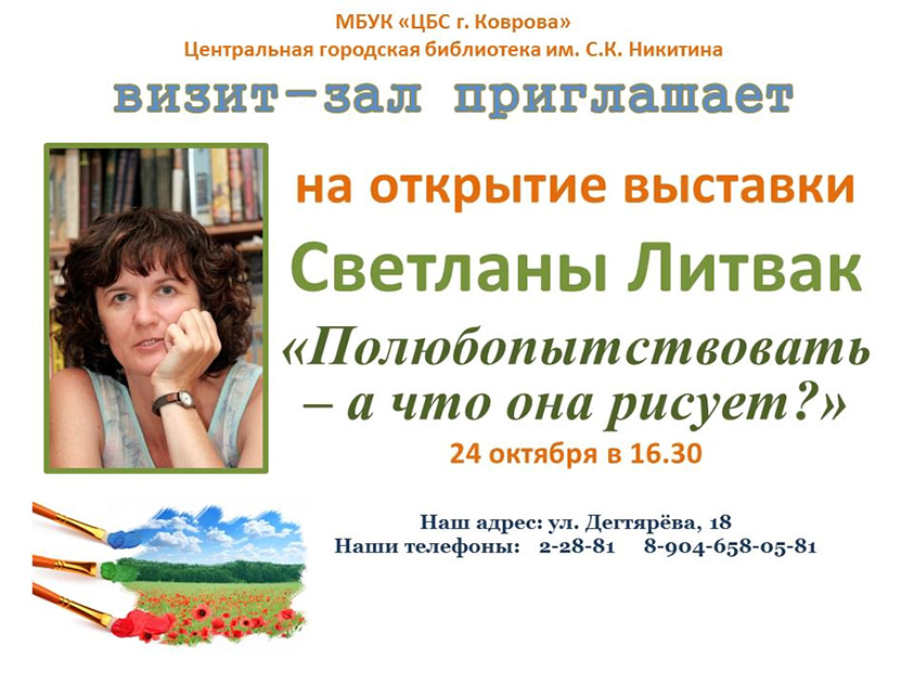 Приглашаем на открытие выставки художницы Светланы Литвак «Полюбопытствовать — а что она рисует?».