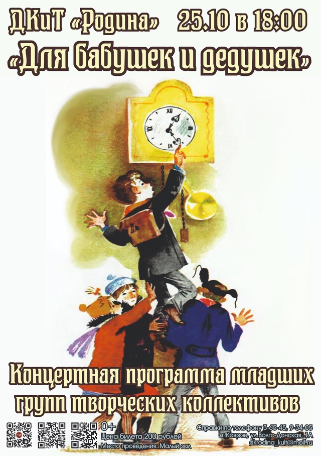 Вечер пятницы в ДКиТ зовёт на представление семейные группы. Название полностью передаёт суть того, что будет происходить на сцене. Организаторы обещают: «Зрелищные моменты и динамичный сюжет не позволят скучать ни детям, ни взрослым». Ну, если в зале бабушки, а на сцене внучата, то скучать никто не будет в любом случае.