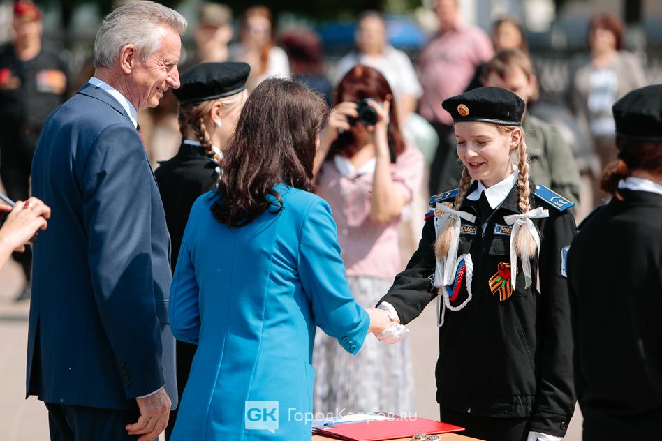 Поздравить кадетов приехали и первые лица Коврова: глава города Елена Фомина, спикер горсовета Анатолий Зотов, заместитель главы по ЖКХ Амангельды Куандыков.