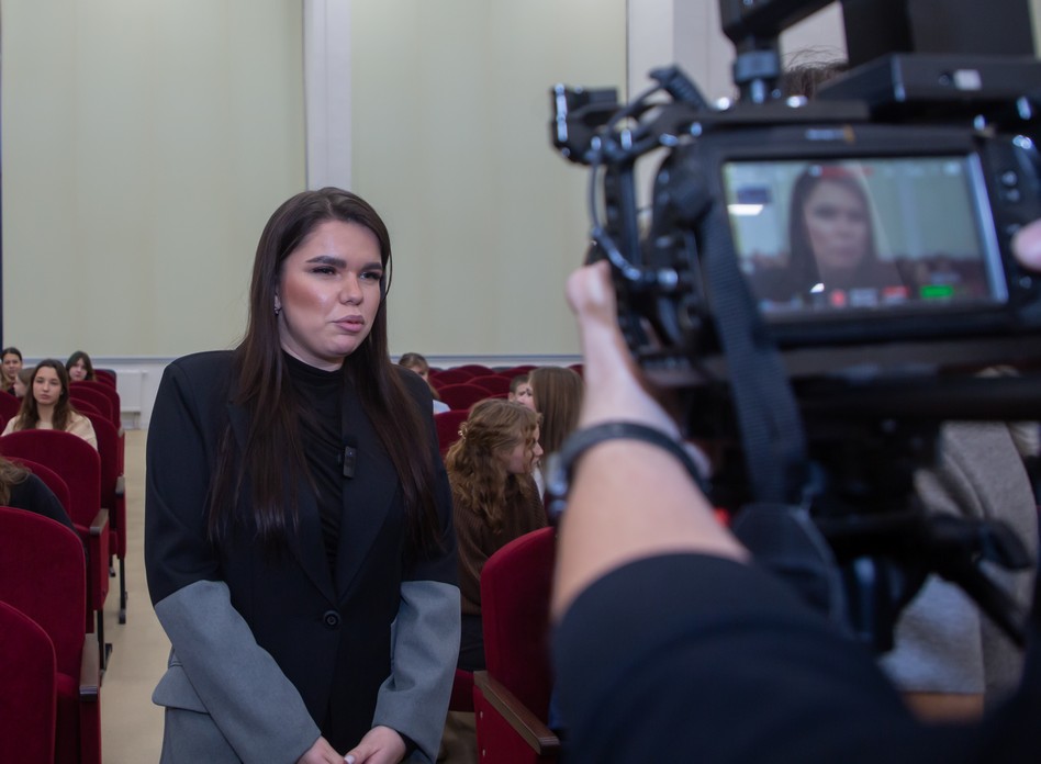 Следующим блоком Урока мужества стала демонстрация видео, на котором Алексей Талай рассказывает о своей деятельности во время встречи с президентом России Владимиром Путиным.