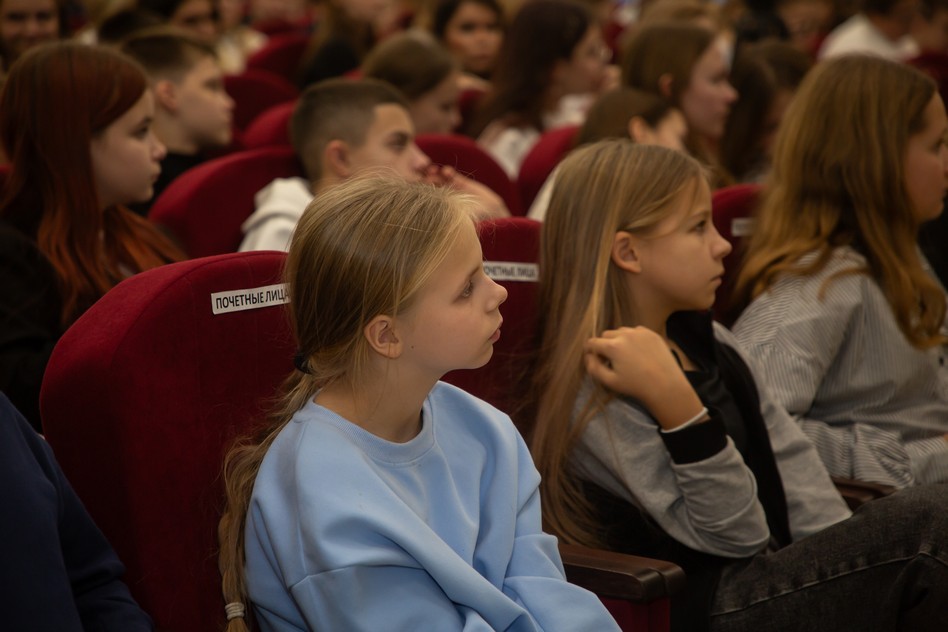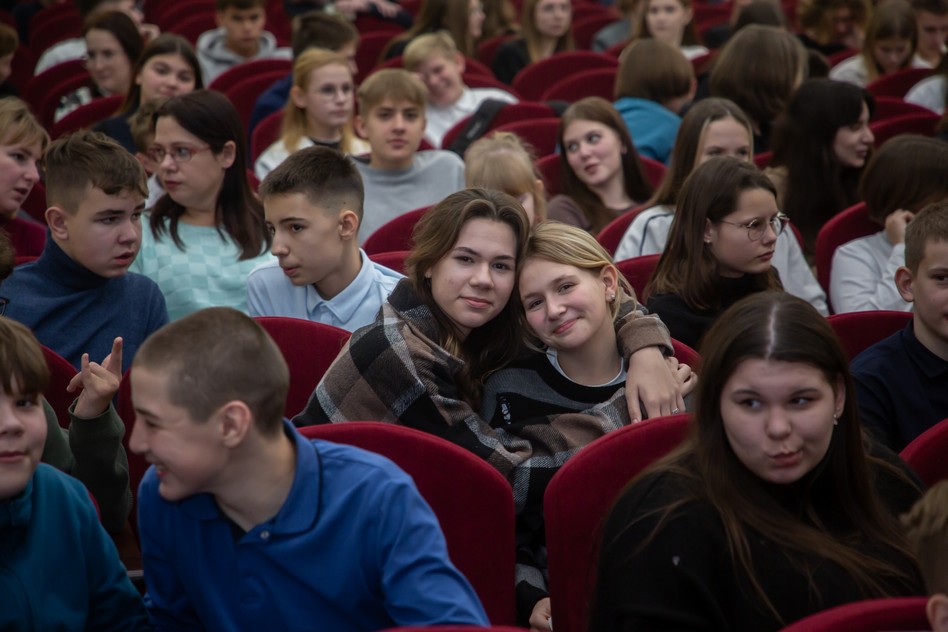 Далее, Дмитрий Косенков коснулся темы фестиваля в Суздале, о котором уже упоминалось. Он обратился к гимназистам с вопросом, занимаются ли они какими-либо видами единоборств. Оказалось, что немало учеников вовлечены в спорт, посещают секции борьбы, а несколько человек поделилось, что даже принимали участие в суздальском фестивале.
