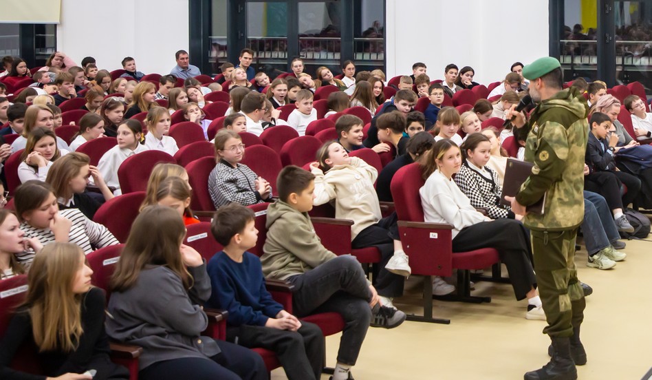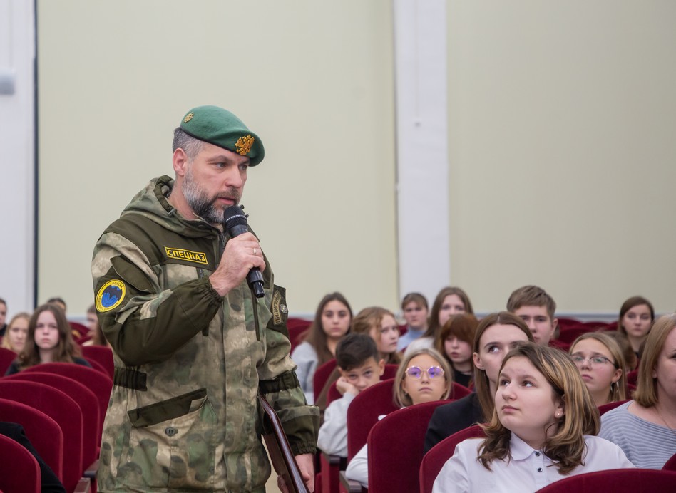 Коль скоро речь зашла о турнире, гимназистам продемонстрировали отчётное видео из Суздаля, после чего Дмитрий Косенков акцентировал внимание школьников на одном из почётных гостей спортивно-патриотического праздника — Алексее Талае.