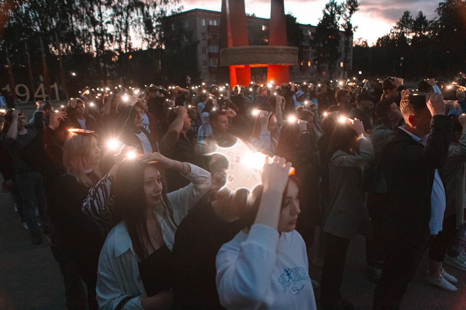 Огненная картина нашего города была, как и в прошлом году — лозунг «Мы помним». В прошлом году для формирования светового панно использовали свечи, что, кстати, вызвало определённую обеспокоенность у представителей МЧС. Лето-2021 выдалось пожароопасным.
