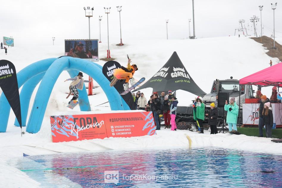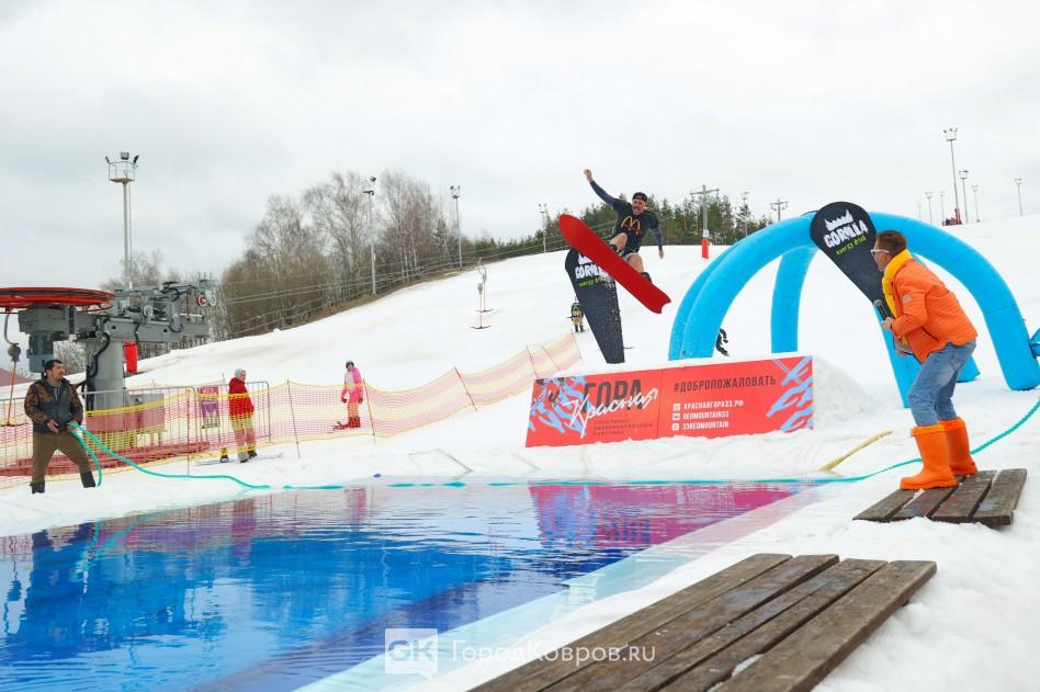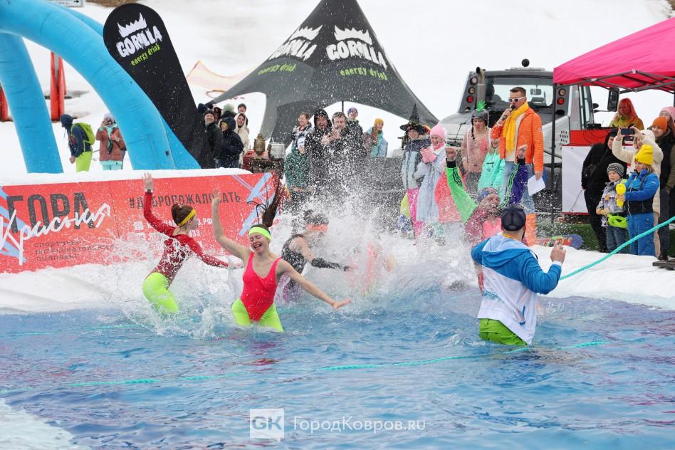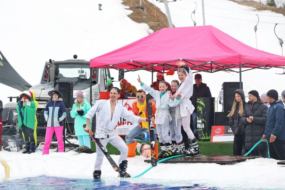 На горнолыжных склонах «Красной горы» в Мелехово Ковровского района громко и ярко закрыт сезон катания на лыжах и сноубордах. По многолетней традиции завершающие заезды стали турниром по скоростному спуску в карнавальных костюмах. С приводнением!