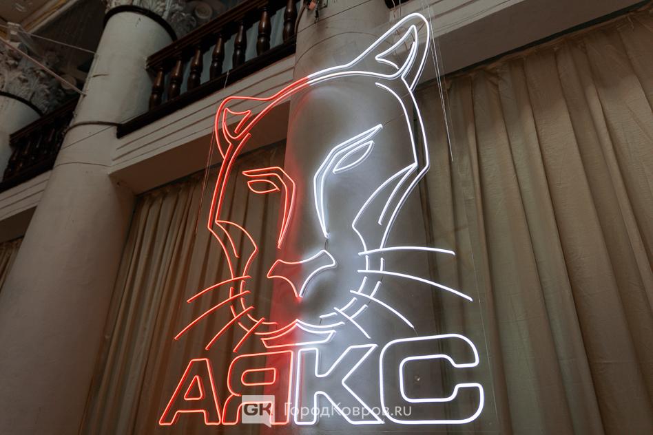 В оформлении фойе чувствовалась душевная теплота, искренняя любовь к творчеству. У каждой стены располагалась фотозона, все они были разными – объёмные светящиеся буквы «АЯКС», прессволл, инсталляция, а ещё – специальная панель-стена, на которой можно было оставить отзыв, поздравить, выразить отношение к любимому коллективу.