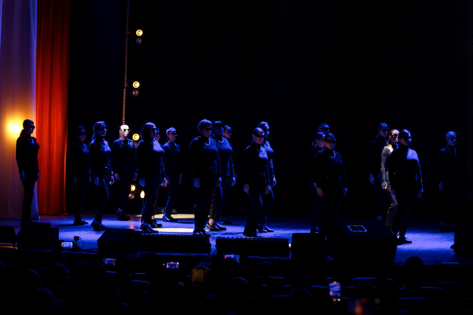 Но вернемся к описанию того, что происходило на сцене. Первый танец под трек «Твори добро» исполнили Дмитрий и Яна Кокленковы. К ним начали присоединяться участники коллектива, постепенно сцена заполнилась танцорами. Музыка, танец, костюмы и свет, — всё это производило сильное впечатление.