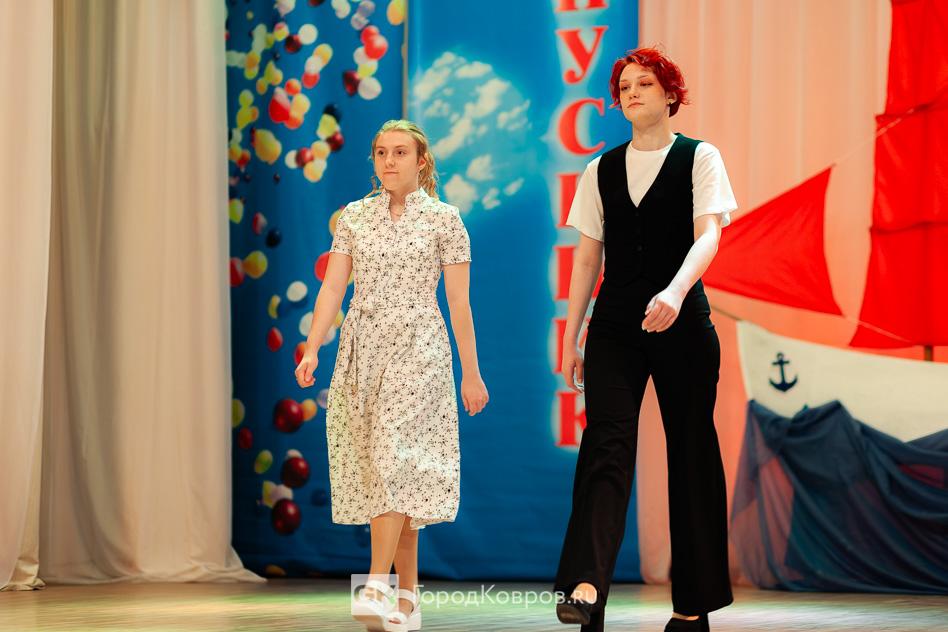 В зале гаснет свет, открывается занавес и под торжественную музыку выпускники выходят на сцену, а потом спускаются в зал. На лицах улыбки, от нарядов глаз не оторвать. Видно, что ребята ответственно подошли к подготовке дефиле. Позади школьные годы, домашки контрольные и экзамены. Сегодня их звёздный час, отправная точка во взрослую жизнь.