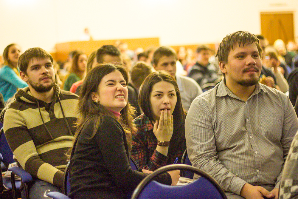 В актовом зале академии собрались школьники, студенты, выпускники и даже учителя и преподаватели. Правила, как и всегда: в команде не более 6 человек, играли в 2 тура по 15 вопросов. Ответы на вопросы звучали в виде музыкальных фрагментов, фраз из известных фильмов, изображений произведений искусства, и, конечно, призов из «черного ящика». Команда студенческих строительных отрядов, например, выиграла подарки из Сочи: блокноты, ручки, сладости и юбилейные монетки.