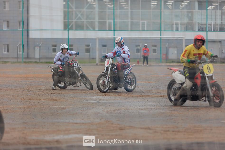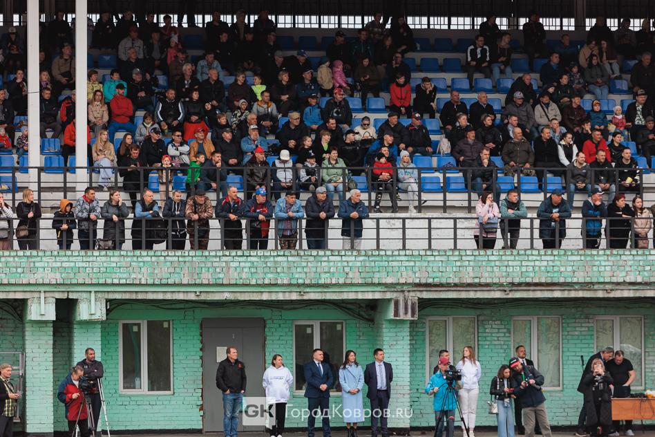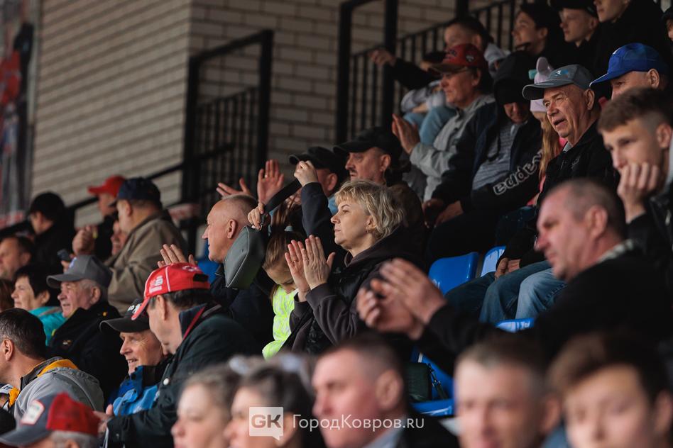 Трибуны были заполнены, интерес к мотоболу в Коврове был и остаётся неизменным. Никого не останавливает ни дождь, ни ветер. Впрочем, погодные условия 26 апреля были относительно неплохими. Пасмурно, небольшой дождь.