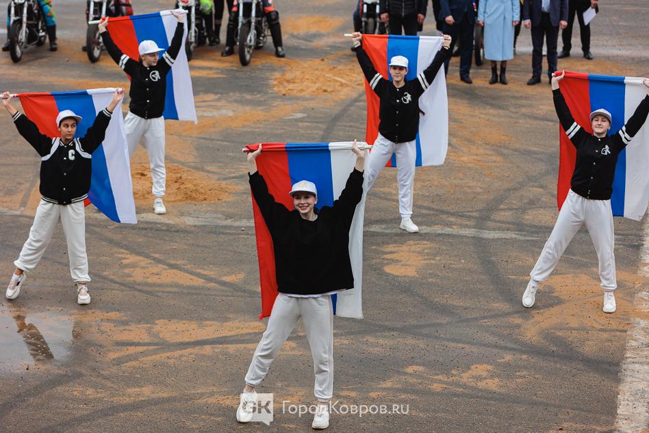 Далее – подъём флага, гимн. По многолетней уже традиции на открытии мотобольных соревнований перед зрителями выступают подопечные Анны Петровой и Дмитрия Тимохина – танцевальная школа «Академия».