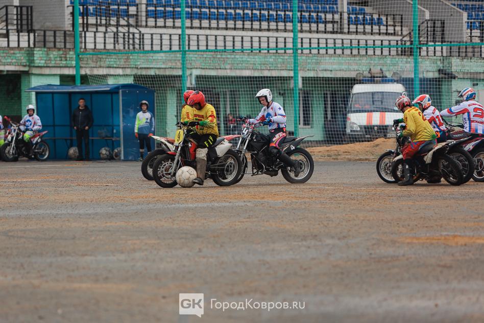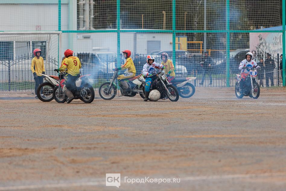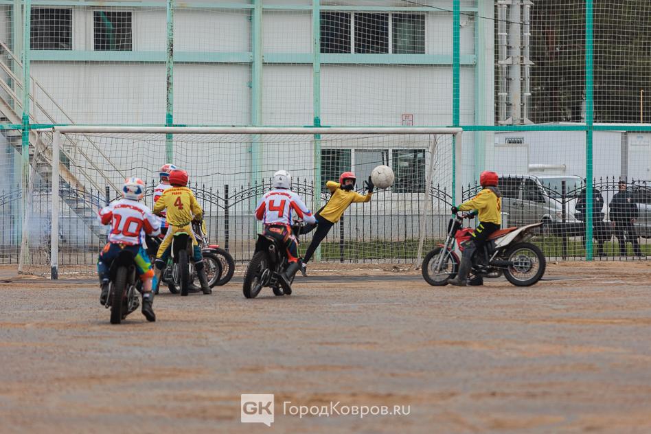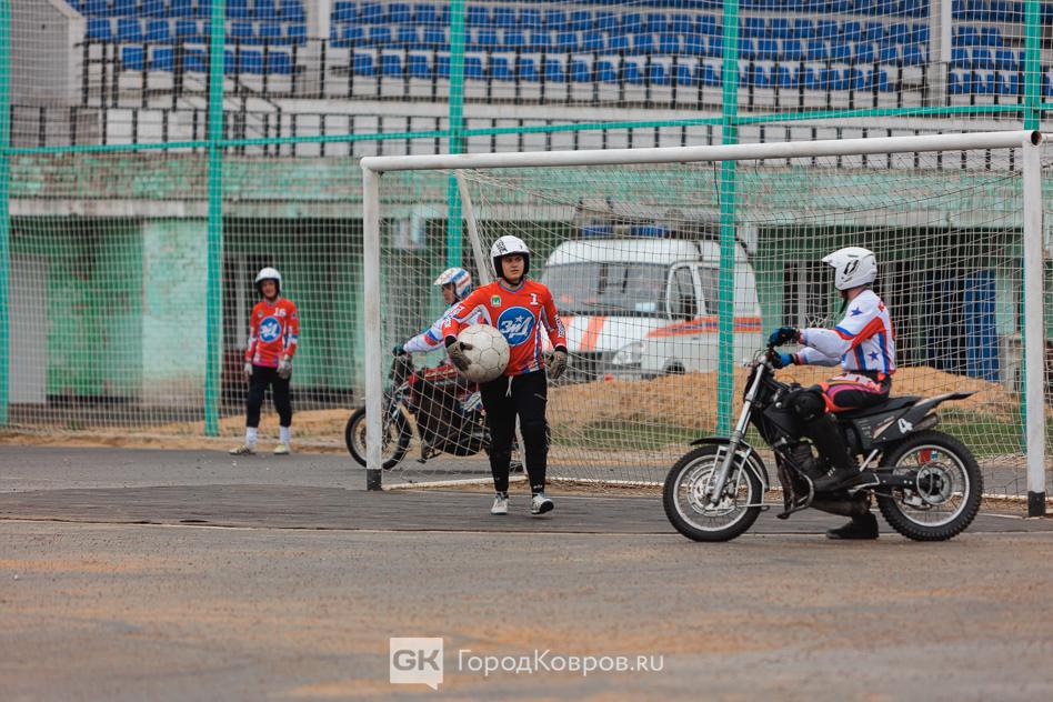 Вчера, 26 апреля на поле СК «Мотодром Арена» состоялось торжественное открытие этапа чемпионата России и групповой этап Кубка России по мотоболу. Первая игра — встреча команд «Ковровец» и «Кировец» — стала победной для наших земляков. Итоговый счёт 13:0. Подробнее в нашем фоторепортаже.