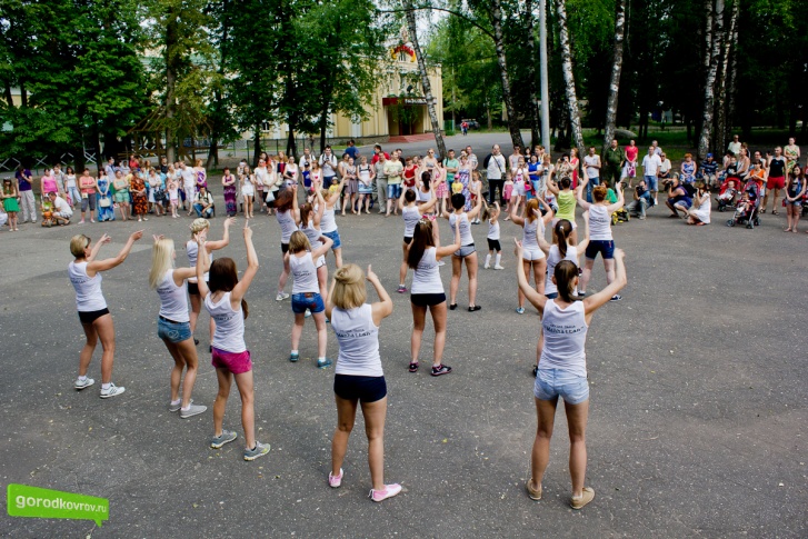 Поплясав 15 минут и собрав зрителей возле основной сцены в парке, девушки ушли в другое место и передали эстафетную палочку коллективам города.