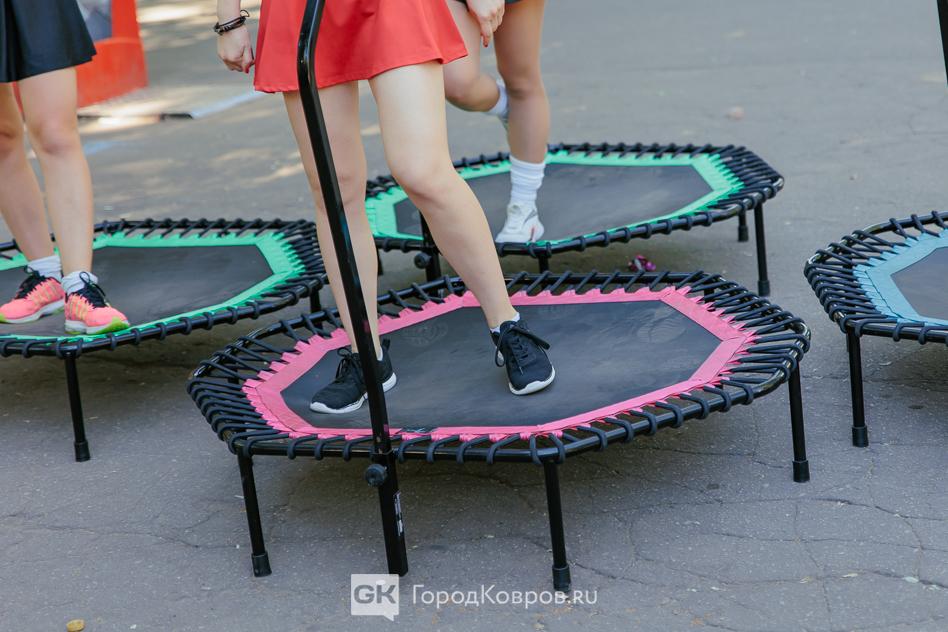 Батут-джампинг — фитнес на батутах. Мы чуть-чуть не успели — девчонки-тренеры уже завершили выступление и начали разборку своих мини-батутов. Но по нашей просьбе специально для GK показали несколько приёмчиков. Даже попробовала сама пару раз подпрыгнуть.