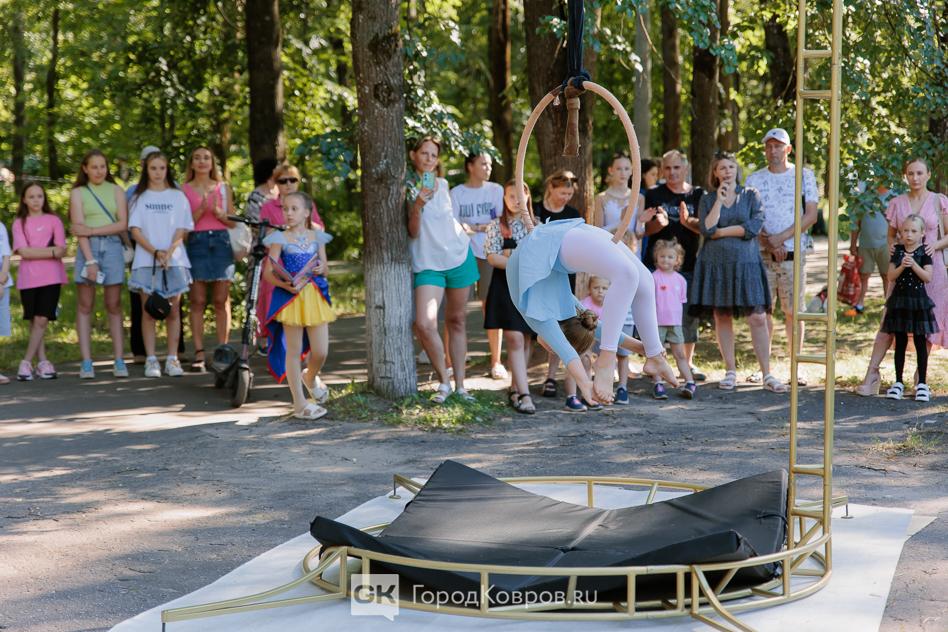 Студия танца «Manhattan» — это сообщество любителей танца и аэробики с многолетней историей, а ещё «Manhattan» — давний друг и партнёр GK. Были рады встрече и тому, что студия успешно развивается. Различными направлениями в студии на сегодня занимается более 200 (!) ковровчан! Мы застали небольшой фрагмент — выступление юной гимнастки на полотне. Хотелось смотреть и дальше, но надо было посмотреть, остальные площадки.