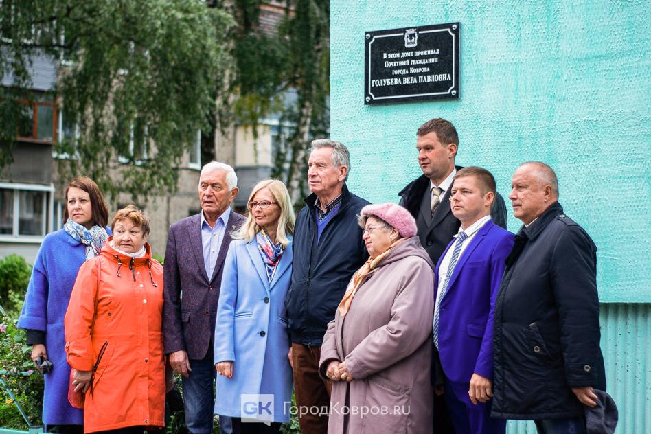 4 сентября торжественно установили мемориальную доску в память о замечательной ковровчанке, нашей современнице Вере Павловне Голубевой. Почётный гражданин Коврова, ветеран труда, депутат и председатель горсовета, вице-мэр по социальным вопросам, великолепная добрая и мудрая женщина… Доска была установлена на фасаде дома 11Б на улице Волго-Донской, где она жила.